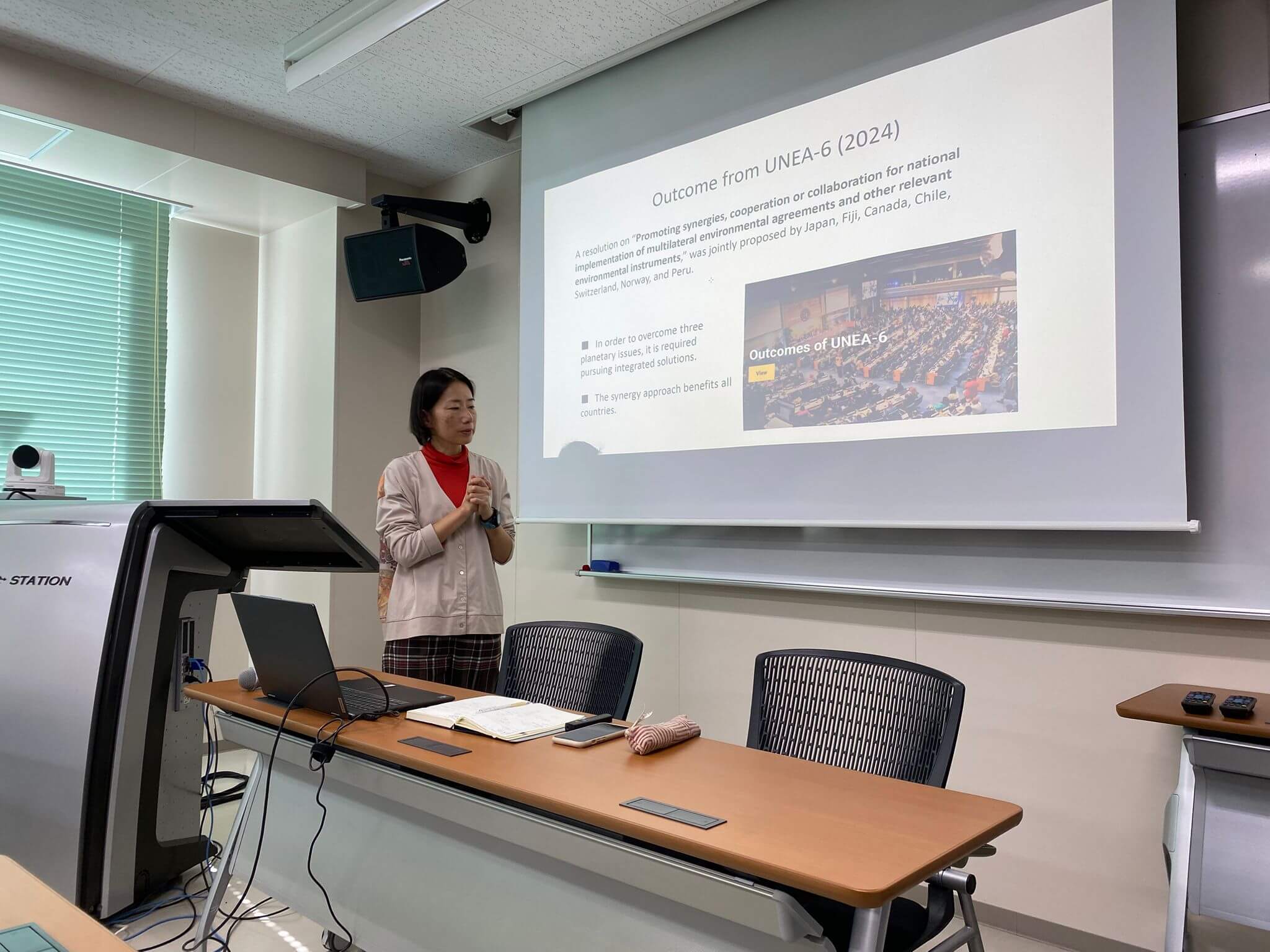 This year’s session was again co‑taught by Emiko Matsuda and Jean‑Marc Champagne, who presented complementary perspectives on the accelerating convergence of climate change, biodiversity loss, and pollution. Ms. Matsuda outlined how recent scientific and policy discussions are shaping expectations for more integrated action and how the concept of the triple planetary crisis is influencing environmental decision‑making across Asia. Her lecture highlighted the growing importance of aligning scientific insight, institutional coordination, and practical approaches to adaptation.